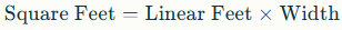 To convert linear feet to square feet, you need to know the width of the material. The formula is: